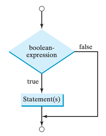 The simplest conditional is an if statement. The flow chart below summarizes how an if statement behaves in a program.